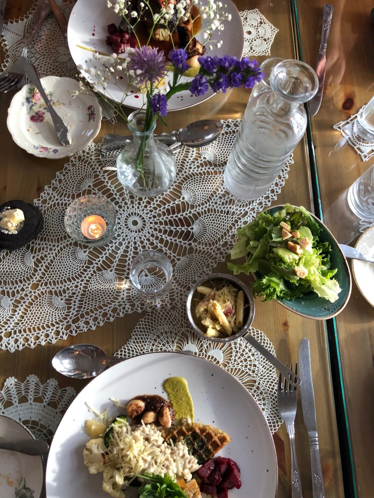 The vegetarian dish is what my dinner dreams are made of. It was, essentially, a dinner made up of everyone else’s side dishes 😍. So I got to sample all of the veggie options without having to say “no bacon, no fish,” etc.